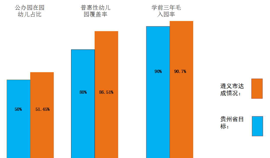 心、遵义市实验幼儿园总园、遵义市实验幼儿园第一分园、遵义市实验幼儿园第二分园,由1园变1中心+N园所模式,有效扩大了市级优质幼教资源;二是努力扩大中心城区和人口大镇学前教育资源。市县两级政府将部分机关单位和学校搬出城区,将其资源留下办幼儿园,以此方式新建、扩建幼儿园10所,全市所有乡镇均建有乡镇中心幼儿园,部分人口大镇已建有第二、第三公办中心幼儿园;三是依托小区配套建设幼儿园,扩大公办学前教育资源。全市共移交小区配套幼儿园44所给地方政府,新建改建扩建幼儿园111所,扩增普惠性学位39062个,普惠资源迅速增加,