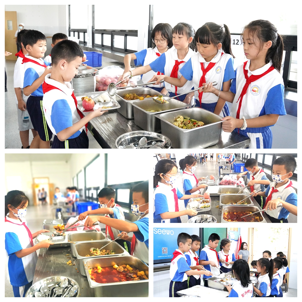 “给孩子们做饭菜,口味要适合小学生,清淡营养,不能放太多调料。还要考虑孩子们咬得动、好消化。看到孩子们吃得干干净净,笑着说:‘阿姨,今天菜真好吃’时,我们既开心,又特别有成就感。”学校食堂班长夏明会说。